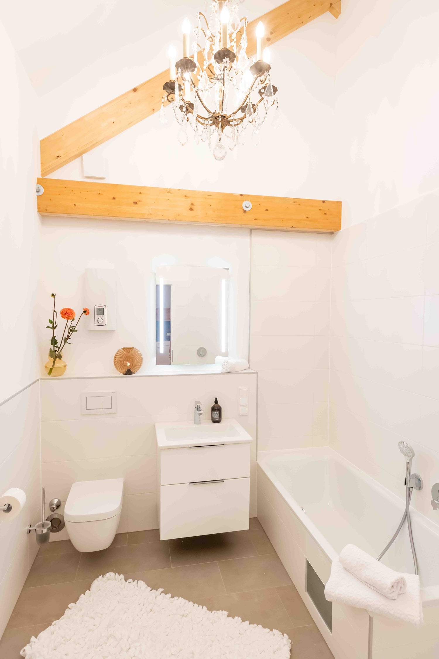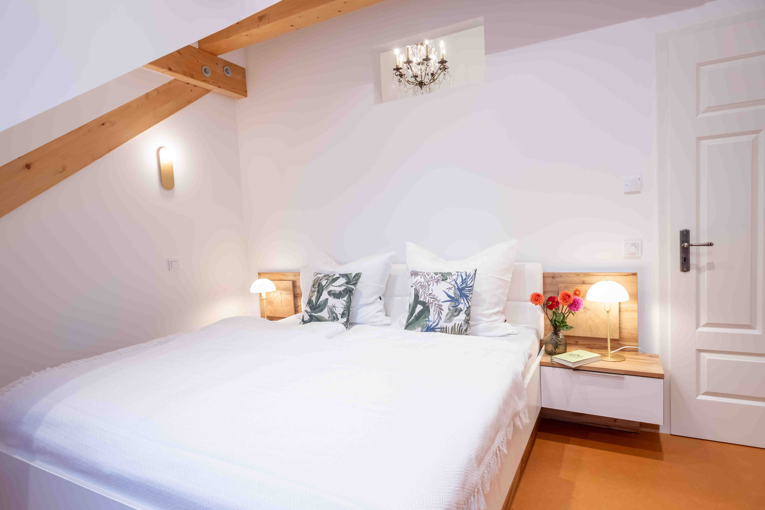 In unserem Apartment „Rosé“ erwartet Sie ein großzügiger Wohn- und Essbereich mit einer einladenden, kleinen Küche, hohen Decken und einem gemütlichen Wohnbereich, der mit einem Schlafsofa und einem großen Tisch ausgestattet ist – perfekt zum Essen, Spielen oder Beisammensein. Sowohl das Wohnzimmer als auch das behagliche Schlafzimmer bieten einen Blick auf den weitläufigen Innenhof, den Kastanienbaum und die Auffahrt des Anwesens. Das Badezimmer ist mit einer Dusche sowie einer Badewanne ausgestattet, die zum Entspannen einlädt. Auf rund 50 Quadratmetern finden Sie ausreichend Raum, um zur Ruhe zu kommen und den Alltag hinter sich zu lassen.